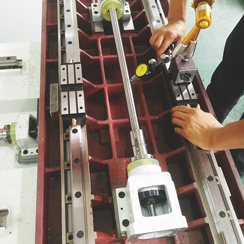 為保證每臺機器能達到高質(zhì)量、每一道工序都有嚴(yán)格細(xì)致的SOP(標(biāo)準(zhǔn)作業(yè)程序)把控,規(guī)范所有組裝的細(xì)節(jié)和要求參數(shù)。每一臺機床在出廠前,都由本公司專業(yè)的QC人員,嚴(yán)格按照SOP進行超過80項的檢測,大致各項精度指標(biāo),小至一顆螺絲的狀態(tài),按照SOP進行檢測,以確保每臺設(shè)備100%全合格。